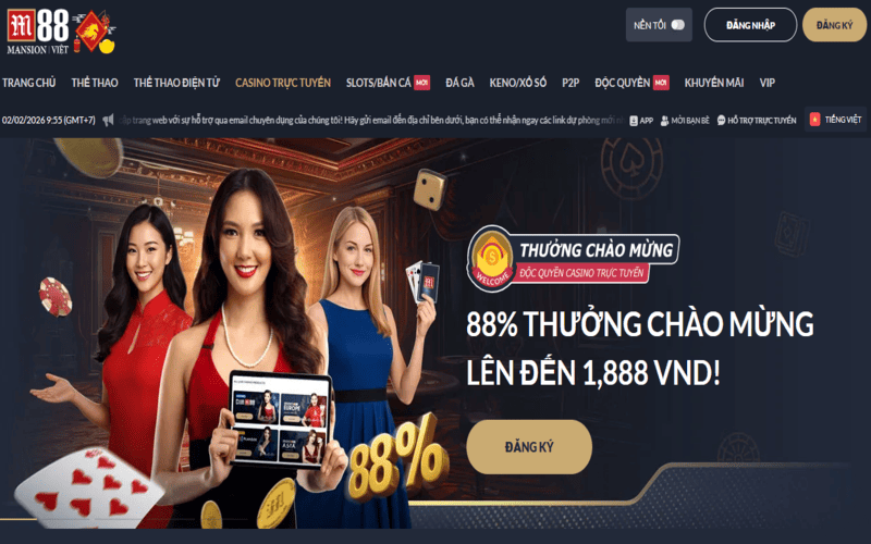 Bên cạnh thể thao, sòng bạc trực tuyến (Casino Online) của M88 cũng là một điểm đến không thể bỏ qua đối với những tín đồ của sự sang trọng và kịch tính. Với sự hỗ trợ của các nhà cung cấp phần mềm hàng đầu thế giới, các sảnh bài tại đây được thiết kế tinh xảo, mang lại cảm giác chân thực như đang hiện diện tại các sòng bài đẳng cấp ở Macau hay Las Vegas.